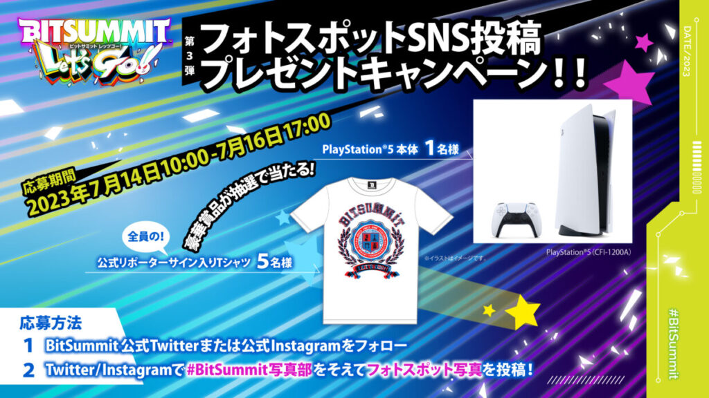 京都府みやこめっせで開催のBitSummit Let’s Go!!にて、今年も2023年6月7日(水)〜7月16日(日)まで豪華3大プレゼントキャンペーンが実施決定!各キャンペーンの詳細は下記をチェック!