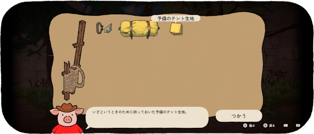 A tent with a hole? Patch it up. A broken backpack ladder? Find materials to repair it.