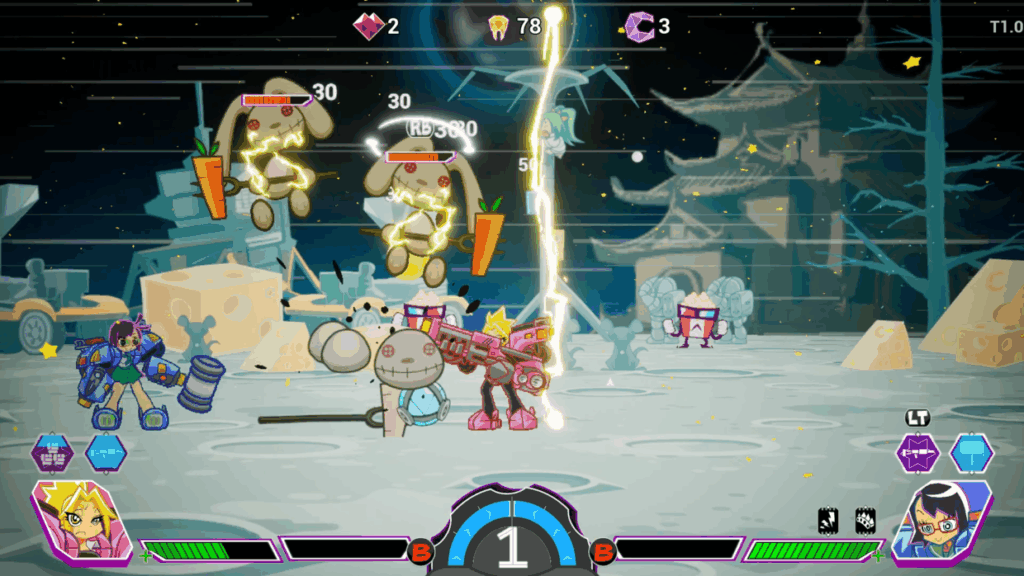 Choose from 4 playable characters, and customize abilities with randomly appearing chips found throughout each stage.