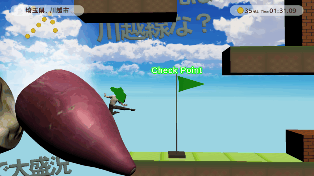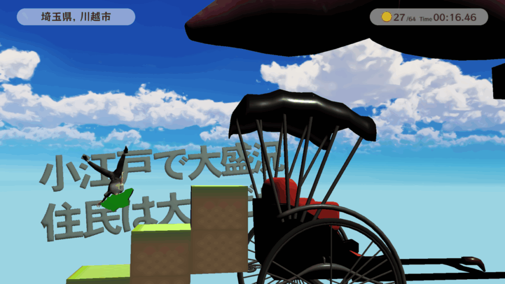 Dash through 3D-rendered "hometown (jimoto: your local roots)" worlds in this innovative platformer like no other!