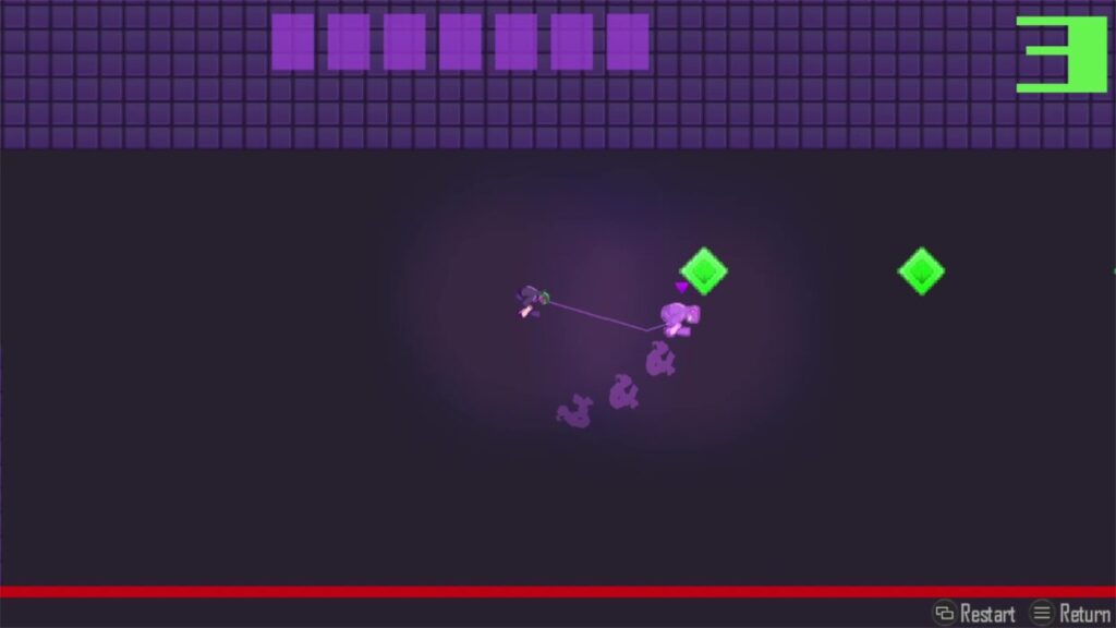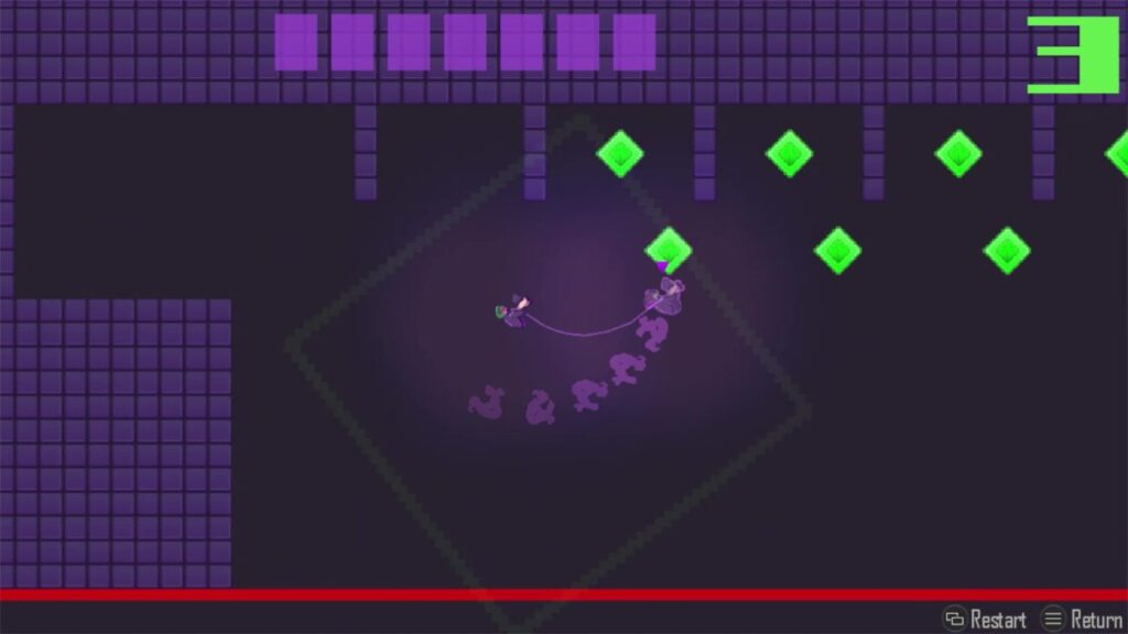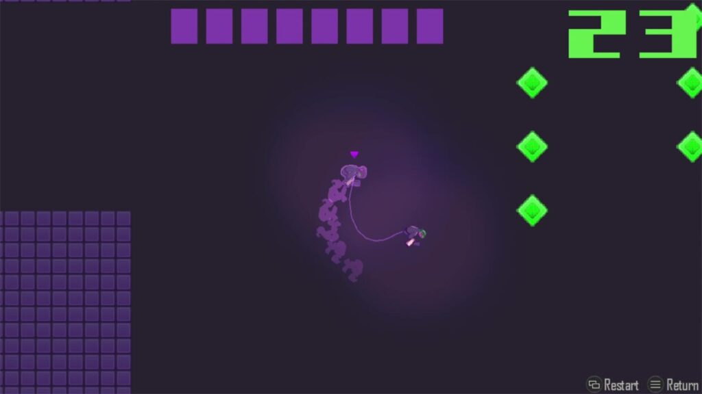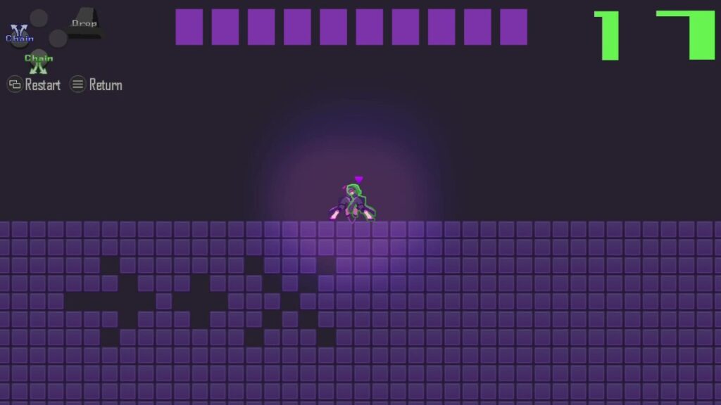 "Chainer" is a 2D action game in which heroines "Yua" and "Maki" cooperate to reach the goal using the technique "Chain" that throws a partner forward.