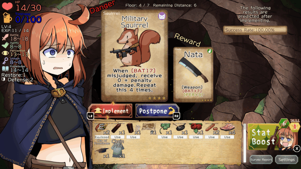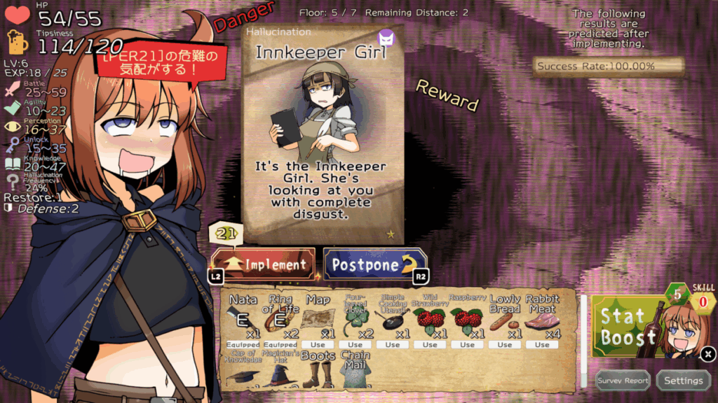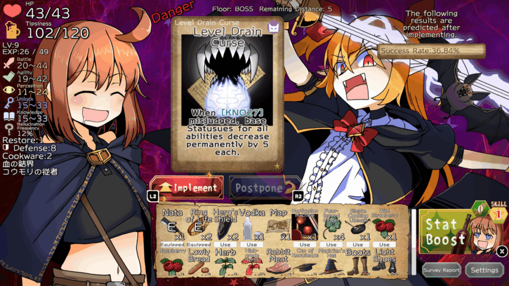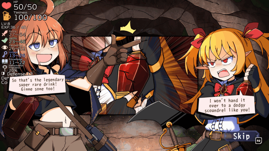 The best part is that the characters in this game get stronger the drunker they become! The only way to step foot into the all-too-risky dungeons is to do so with intoxicated abandon! To top things off, the drunker you become, the less you can tell what's real and what's not, and you may even hallucinate. Your pet dog Odysseus that appears before you may very well be a fiendish demon. Please drink responsibly.