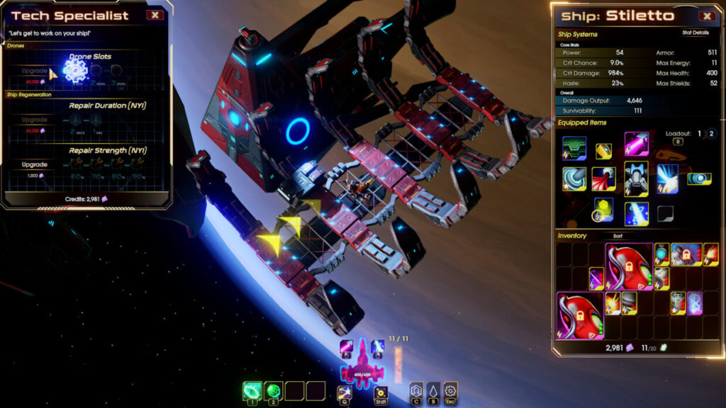 Through the Codex, obtain powerful Set Bonuses by looting specific groups of item types. Then, upgrade the Codex to scale its bonuses based on the rarity of the loot you find, and even Rewrite it so you can activate more than a single Set Bonus at a time! Buy ship upgrades from the Tech Specialist, including slots for brand new types of equipment, such as deadly Drones that grant unique bonuses. Your ship can only fit so many upgrades, so choose wisely... or grow strong enough to Rewrite those limitations out of existence!