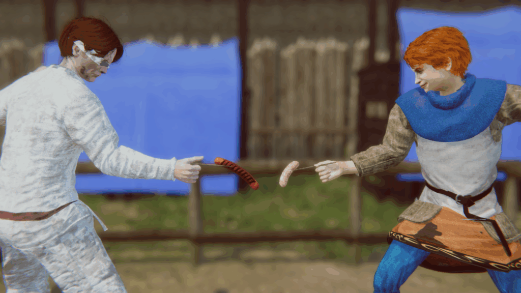 As a medieval prisoner, you will fight for your life in the "Sausage Duel," a pastime of the nobility.