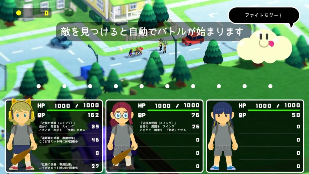 Each character moves around by AI, and the player watches over them as the game progresses.
