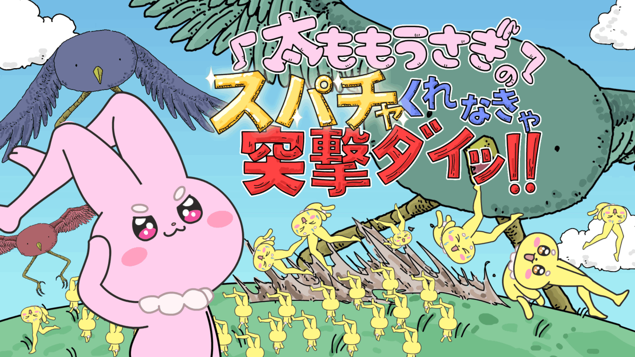 スパチャで戦う!2Dアクションゲーム! あなたは耳がとくちょーてきな太ももうさぎ! 伝説の太ももパワー系傭兵にして、今は配信者! スパチャ(投げ銭)で力を得ながら、捕らわれた仲間を救出しよう! 助けた仲間はあなたのファン(=視聴者)になり、戦いを盛り上げてくれるよ! チャンネル登録者が増えるほど、パワーもアップ! 視聴者が増える = スパチャが増える = 大混乱が加速! 太ももうさぎたちを脅かす謎の存在の正体とは…? 登録者数を集めて、究極のボスステージに挑め!