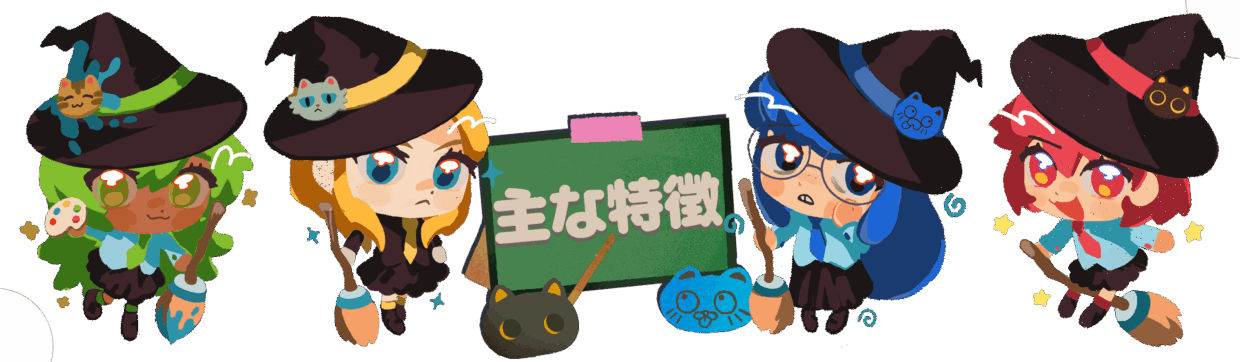• 性格がバラバラ、思春期真っ最中で恋を探し求める4人の魔女たち