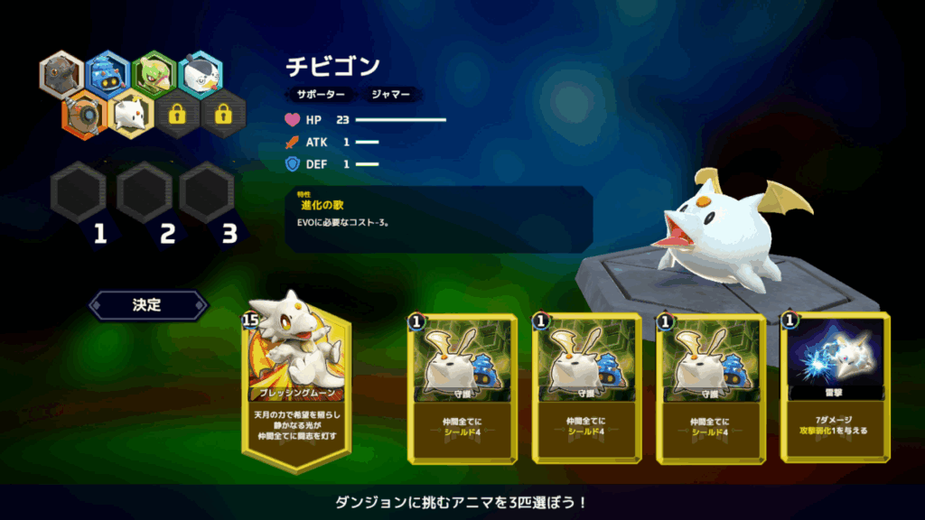 キャラクターたちの進化やスキル選択、