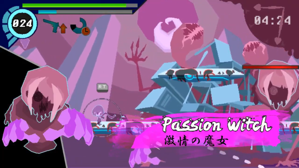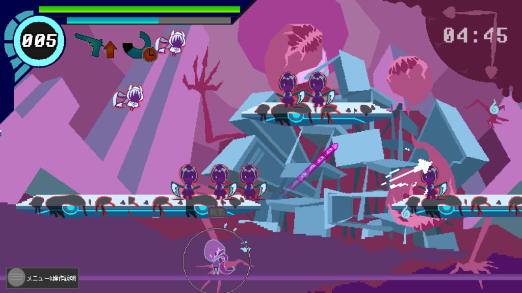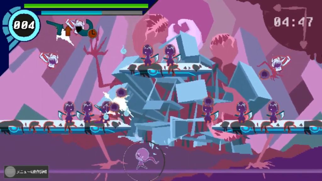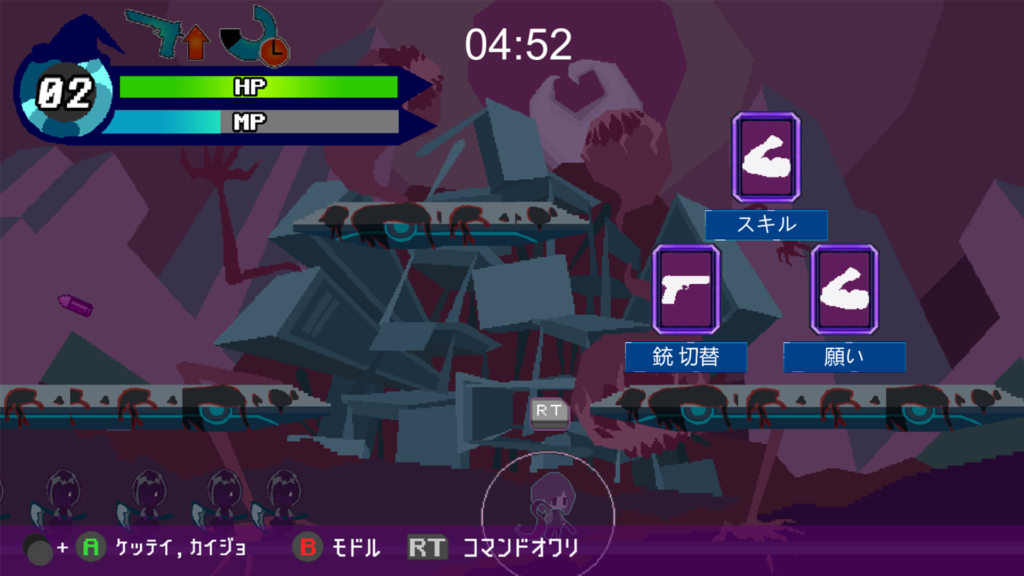 アクションシューティングの敵を倒しまくる気持ちよさとコマンドゲームで戦略を考えて特大ダメージを与えた時に感じる気持ちよさ!そんな二つの気持ちよさを同時に感じる事の出来る欲張りな2Dコマンドアクションシューティングゲーム! 独特の世界観にも注目です!!※動画や画像は開発段階いのものです、今はもっとかっこよくなっています!※