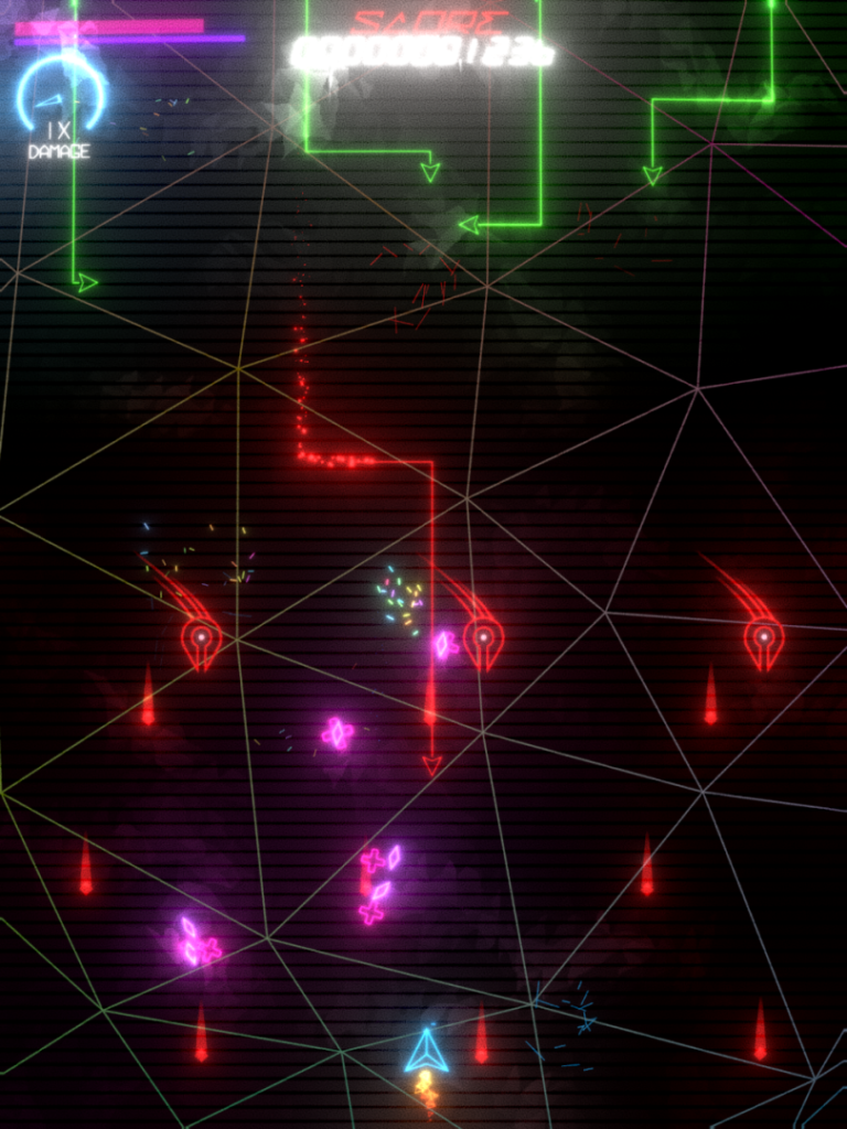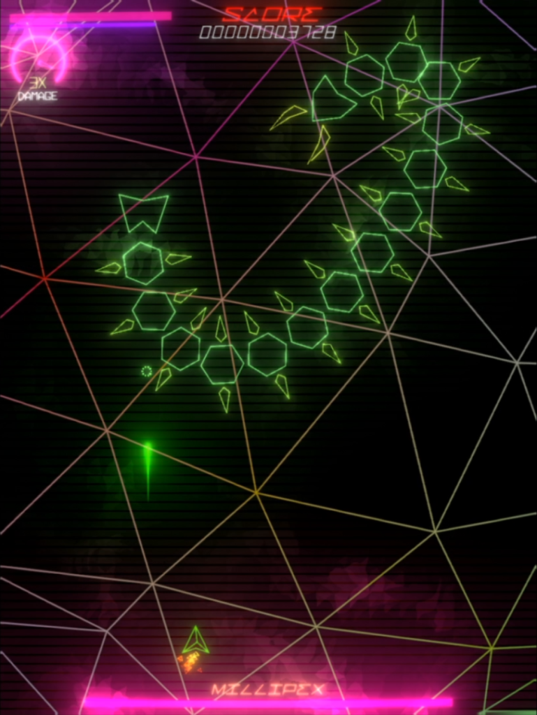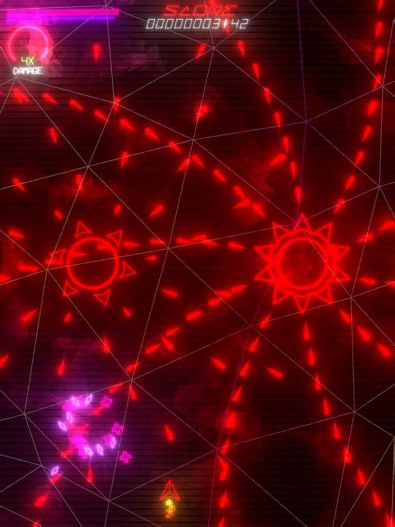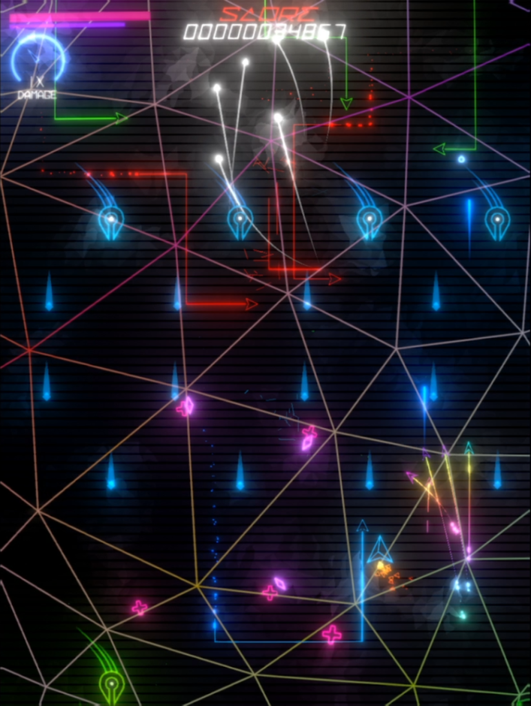 古いアーケードゲームの「GALAGA」や 「DEFENDER」と同じゲームシステムです。そし て、日本のアーケードゲームの「首領蜂」と同じで す。でも、トライ・ガーは手続き生成があります。