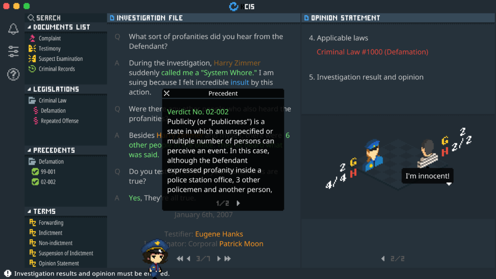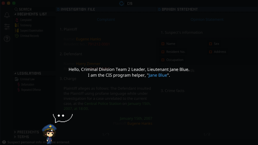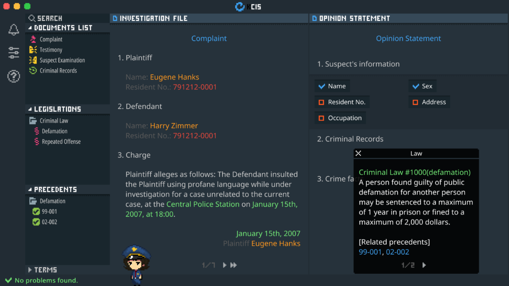 『リーガルダンジョン』は警察官になり、捜査書類を作成するゲームです。あなたは窃盗、殺人など8つの事件と関係のある捜査書類を読み、関連法令と判例に従い最終的な捜査意見を作成していきます。犯罪者を検挙し処罰する過程を繰り返していく中で、このゲームはあなたに「検挙実績こそが治安のバロメーター」ということを教えてくれます。さあ、ダンジョン内であなたを待っている『真の犯人』を探しに行くのです。 このゲームには、14つのエンディングや6つの実績とかわいいスクリーンメイトショップが含まれています。個人の人生を天秤にかけながら、すべてのアイテムを手に入れてみましょう。