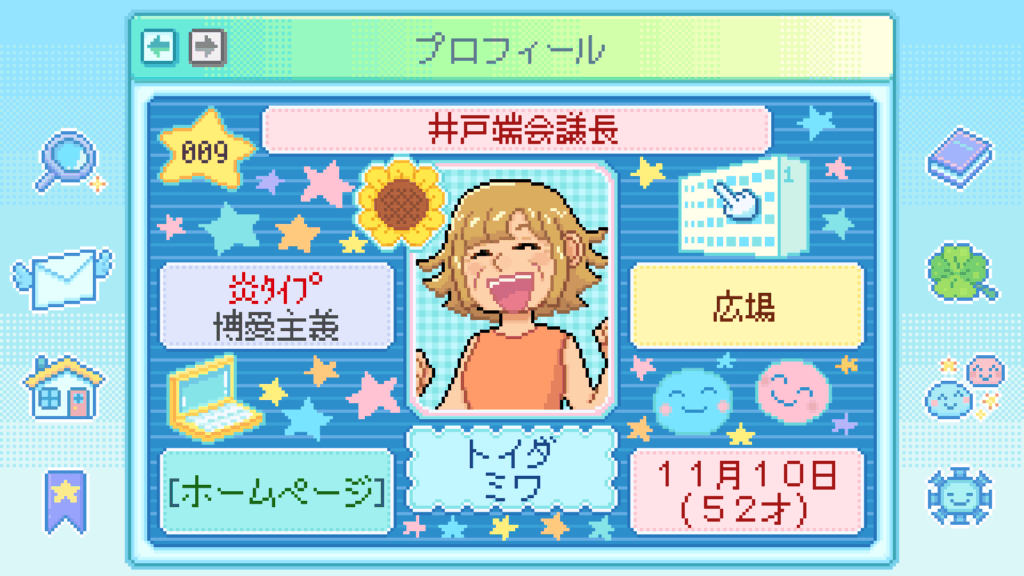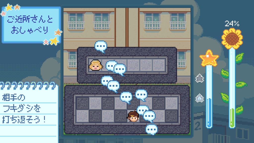 『Danchi Days』は途絶えてしまった団地の夏祭りを復活させるADVゲーム。団地を探索し、ゲーム内のインターネットを駆使したり、五感をテーマにしたミニゲームで遊びながら招待客を集めよう!GBA風ドット絵が描くポップな雰囲気の中で、団地のことを誹謗中傷するネット記事や高齢化社会・認知症など現代日本の課題に向き合うストーリーが体験できます。