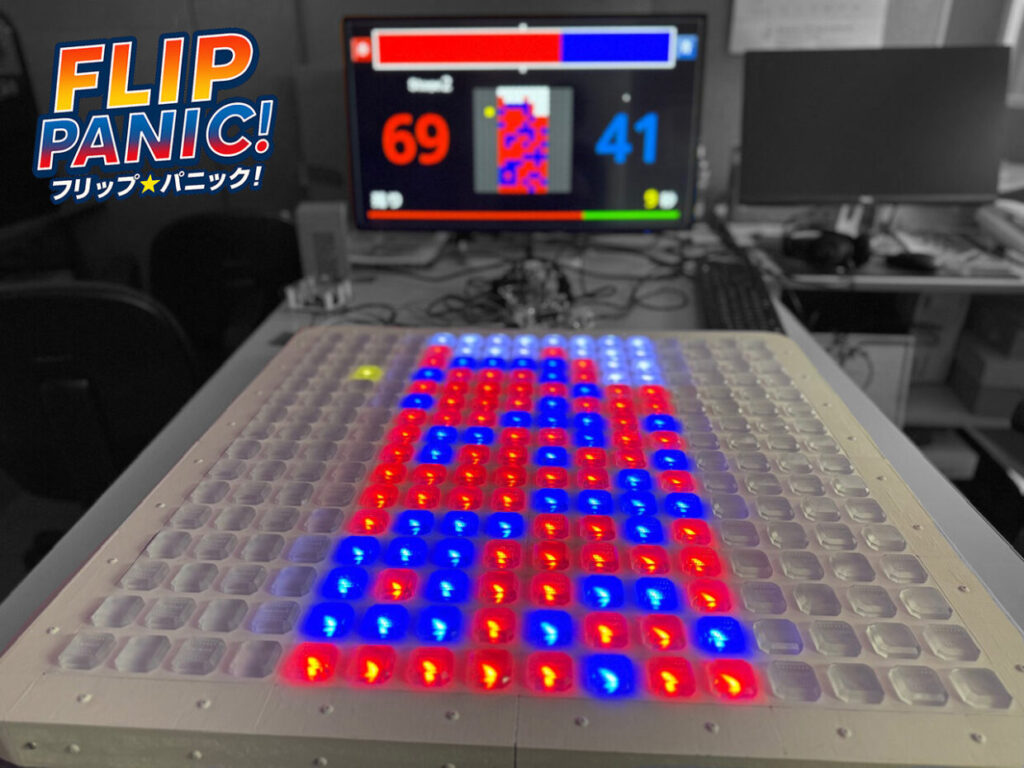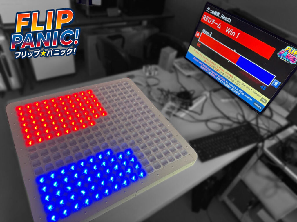 光り輝く 16×16=256 個 のフルカラー LED ボタンを敷き詰めた手作りゲーム盤 マトリクスイッチ を舞台に、最大 4 人 で挑む 30 秒一本勝負の陣取りアクションゲームです。