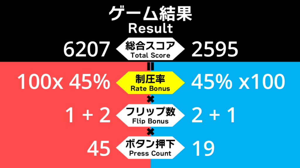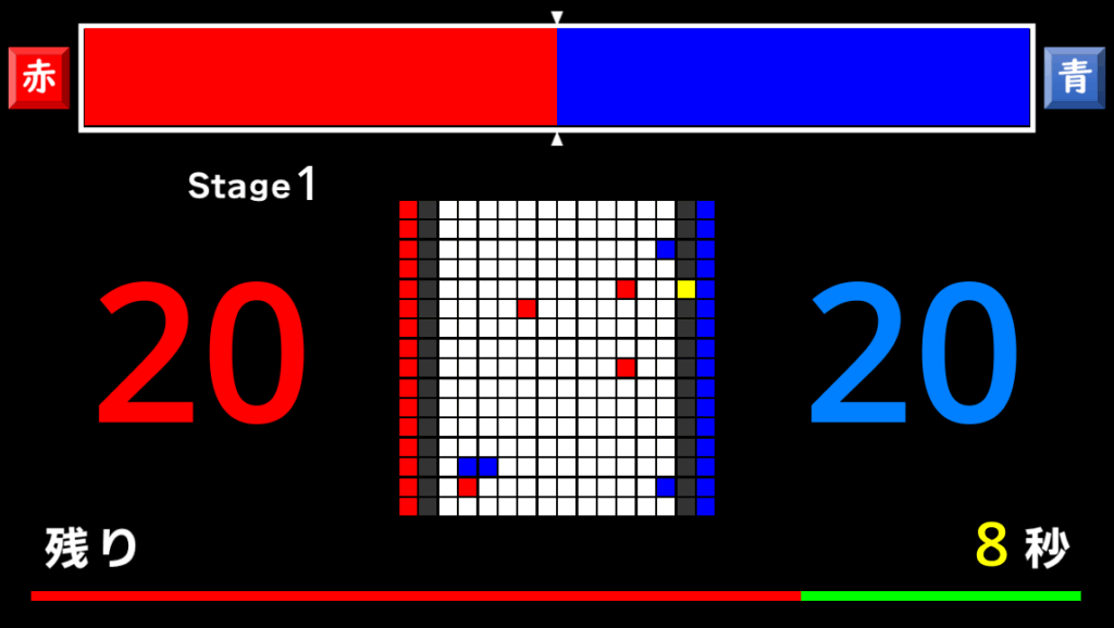 3. タイムアップ時に自チーム色のボタンが多いチームが勝利!