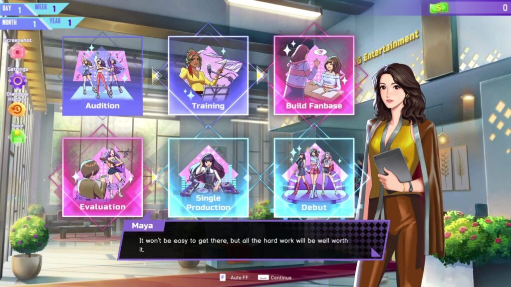 このライフシミュレーターでは、あなたはマネージャーとして、才能の発掘、スケジュール管理、予算作成、SNS戦略、楽曲の選定、そしてアイドルたちのスタイリングを担当します。